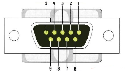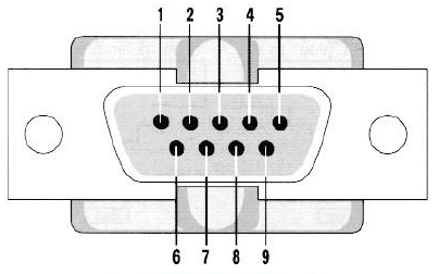 DB9公頭(5針朝上)上排從左到右是1~5,下排是6~9,而DB9(5針朝上)母頭正好相反,上排從左到右是5~1,下排是9~6。如果是作為RS-232C接口,則各引腳定義如下: